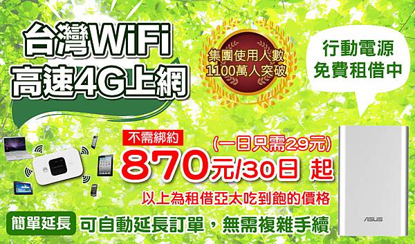 ※根據區域不同,機械到貨時間也會分歧 好康內容: 在旅行利用無線網路