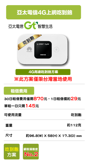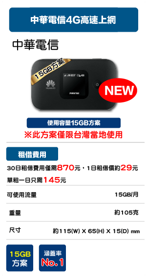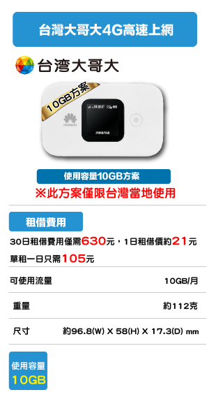 單日租借也沒問題,相當合適短時間間內有沒有限上彀需求的客戶。